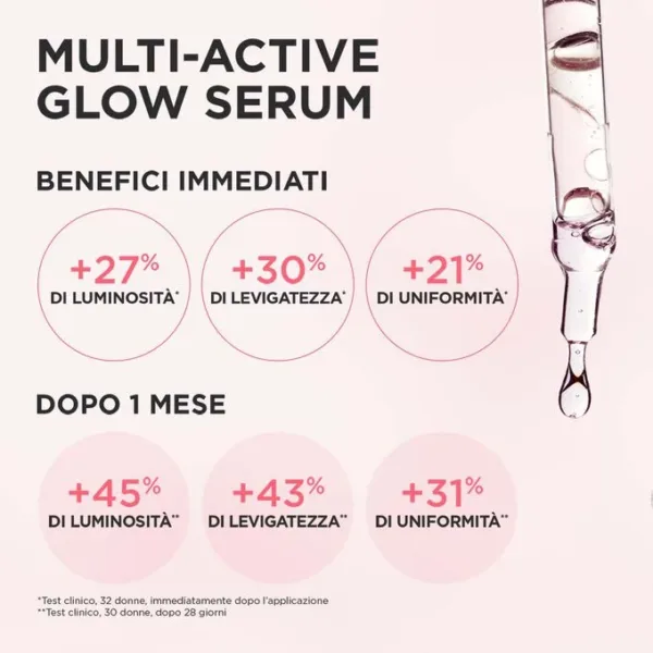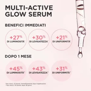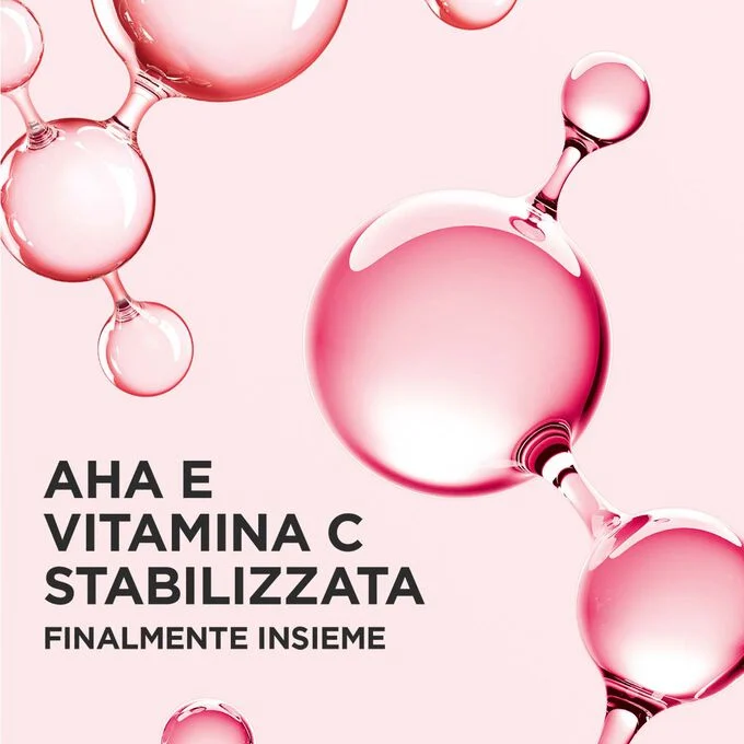 Abbina la vitamina C stabilizzata per un incarnato luminoso e uniforme, all’acido glicolico (AHA) per una pelle affinata e radiosa. L’estratto di semi di acerola (pianta bio) contribuisce a conferire a questo duo la sua azione energizzante e aiuta ad ottenere una pelle radiosa a lungo termine.