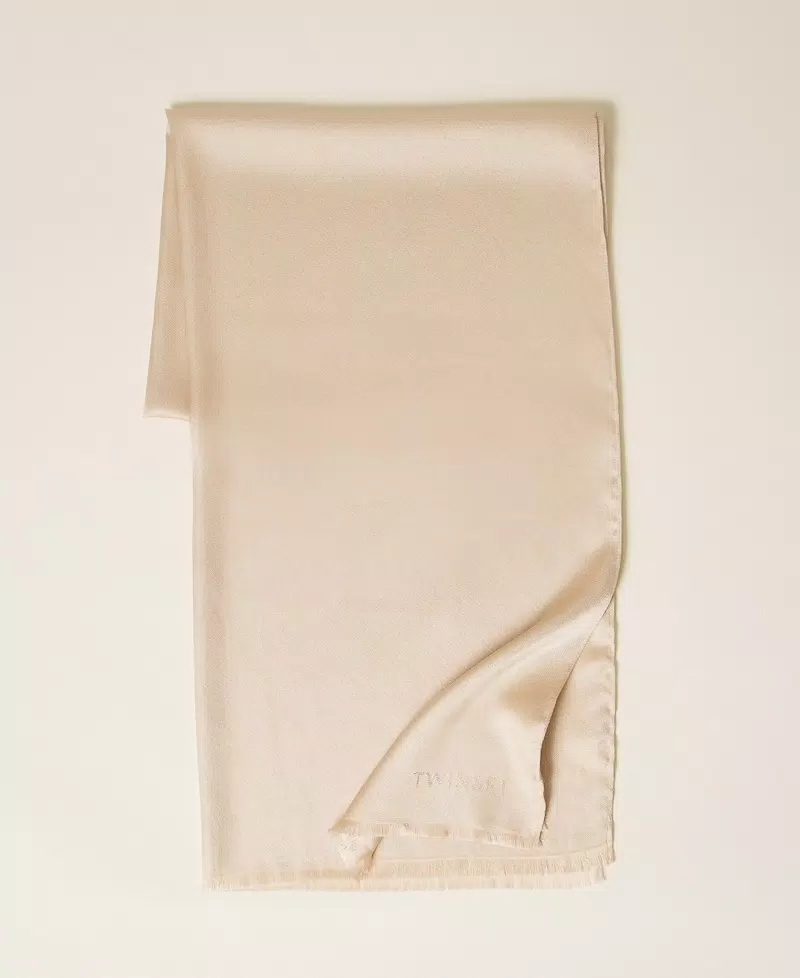 Stola in tessuto a tinta unita con lurex e logo jacquard piazzato, profili sfrangiati.